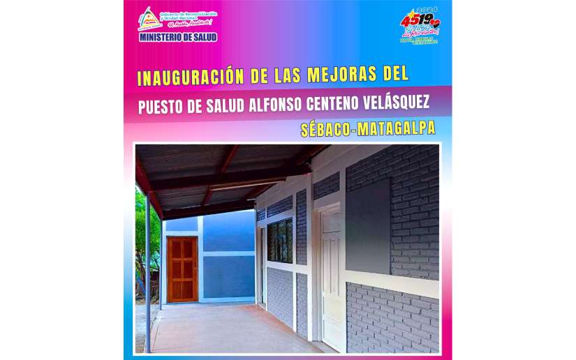 Mañana Viernes 10 de Mayo, inauguraremos las mejoras del Puesto de Salud Alfonso Centeno Velásquez, Comunidad Las Pozas, Municipio Sébaco-Matagalpa, para atender en condiciones dignas a 931 habitantes de las comunidades Potrero Largo, Potrero Redondo y Las Pozas.