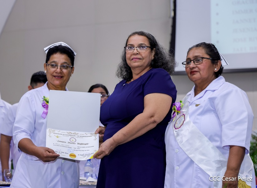 Este 10 de mayo, con un solemne acto en el Centro de Convenciones Olof Palme, el Ministerio de Salud (Minsa) y la Asociación de Enfermeros y Enfermeras Nicaragüenses celebraron el Día Internacional de la Enfermería con protagonistas nicaragüenses.