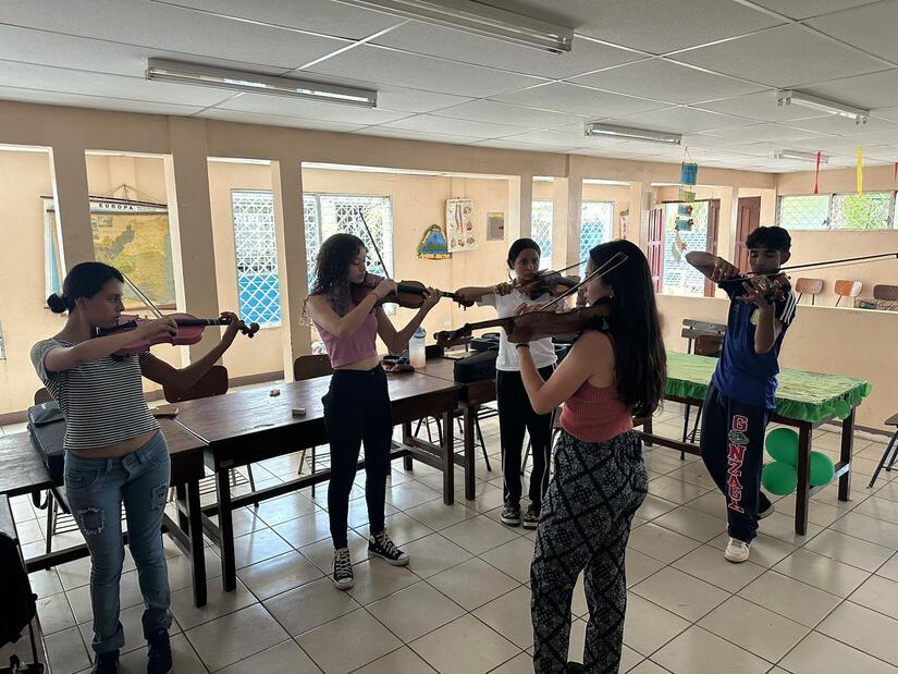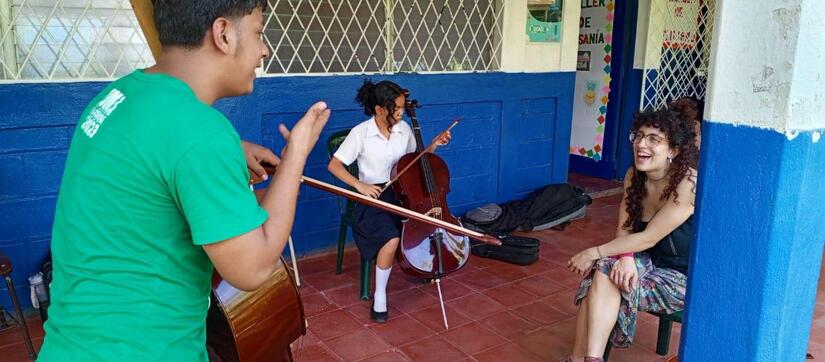 Gracias al apoyo de nuestro Buen Gobierno, a la Embajada de Italia en Nicaragua, Fundación INCANTO y el Teatro Nacional Rubén Darío, contamos con la participación de las maestras italianas Sofía Astarita y Giulia Casini, instrumentistas de violín y violoncello del “Conservatorio Pietro Mascagni” Instituto Superior de Estudios Musicales Livorno, quienes participaron en Temporada Lírica 2024, impartieron Clases Magistrales a estudiantes e instructores del Programa de Orquestas del MINED, compartiendo sus experiencias y conocimientos a Niñ@s y jóvenes integrados a este Proyecto.