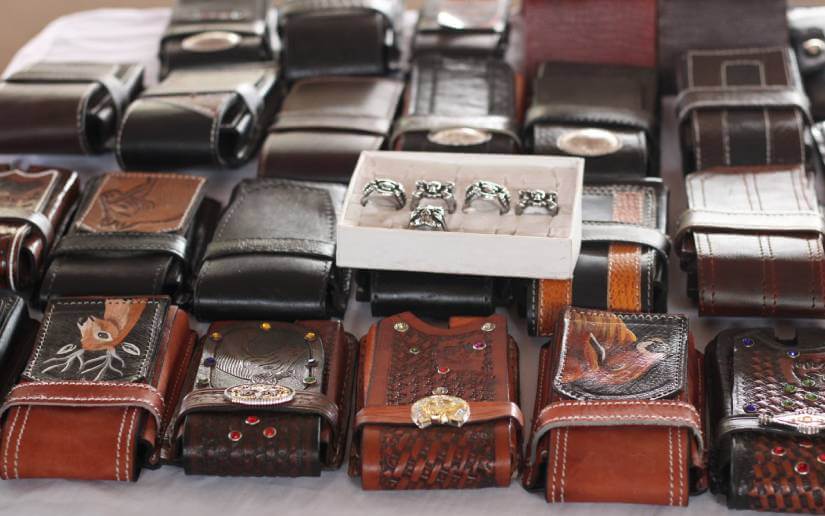 Fajas convencionales, estilo vaqueras, estilo rockeras, fajas para reloj, fundas para celulares, cuchillos, billeteras, bolsos manos libres y cualquier pieza elaborada en cuero con la excepción de zapatería.