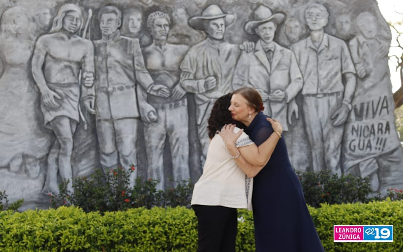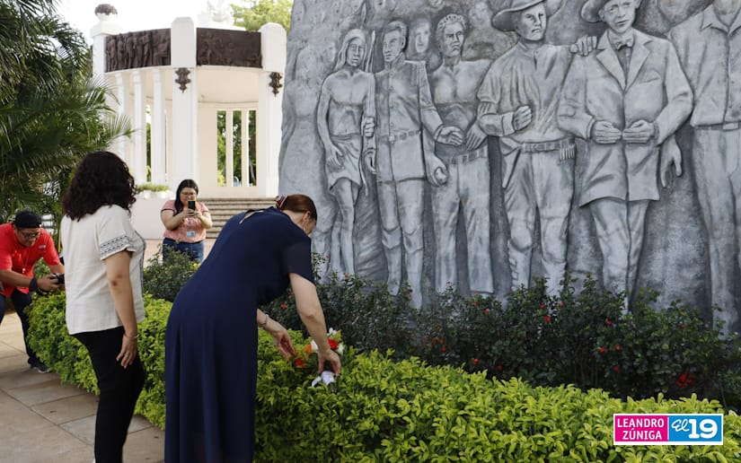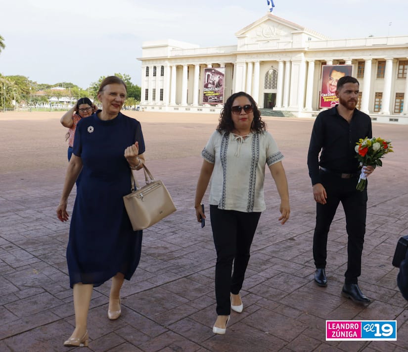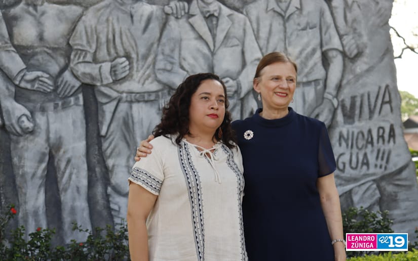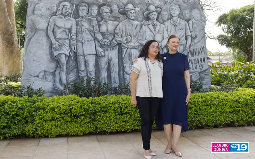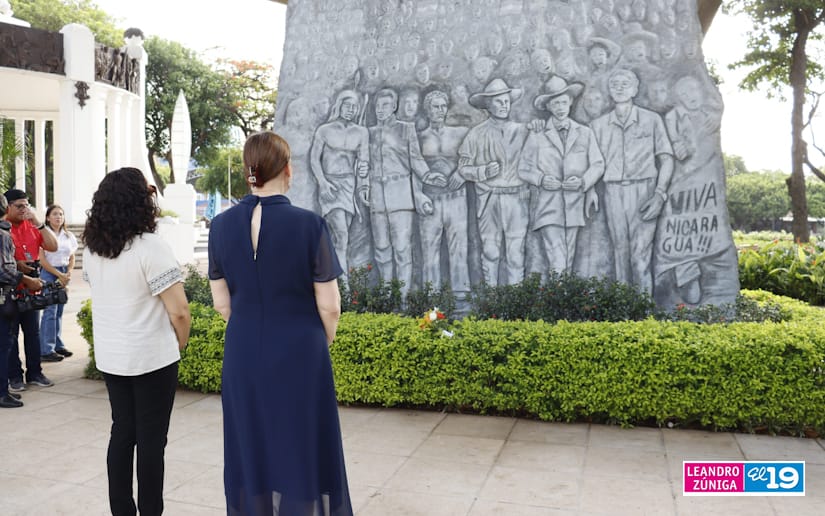 La Embajadora de Serbia concurrente con Nicaragua desde México, Tatjana Conic junto a la compañera Javiera Pérez Guerra, Codirectora General del Instituto de las Culturas de Pueblos y Juventudes llegaron a la Plaza de la Revolución para depositar flores en el Mausoleo y Monumento de los Héroes.