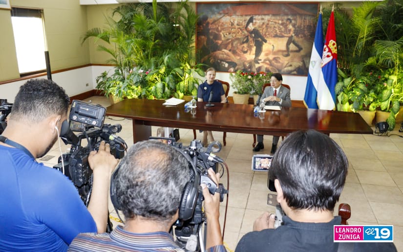 “Agradecerle por su visita y el interés de fortalecer las relaciones diplomáticas y de intercambio cultural; hoy inaugura en el Teatro la exposición de fotografía, así que saludarla en nombre de nuestro Gobierno, el Presidente Daniel Ortega y la Compañera Vicepresidenta Rosario Murillo y es la forma práctica de decir que las relaciones entre Serbia y Nicaragua son relaciones que además de tener 120 años de una relación histórica y diplomática, continúan fortaleciéndose, hemos tenido también visita de delegaciones de Nicaragua en Serbia, reuniones con el primer ministro, igual que el canciller en el 60 aniversario del Movimiento No Alineados, el canciller que ha estado aquí, en fin una reunión muy positiva y activa”, agregó.