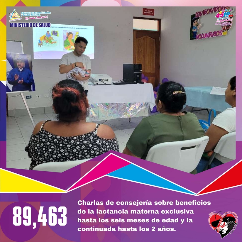 • 89,463 charlas de Consejería sobre beneficios de la lactancia materna exclusiva hasta los seis meses de edad y la continuada hasta los 2 años de edad.