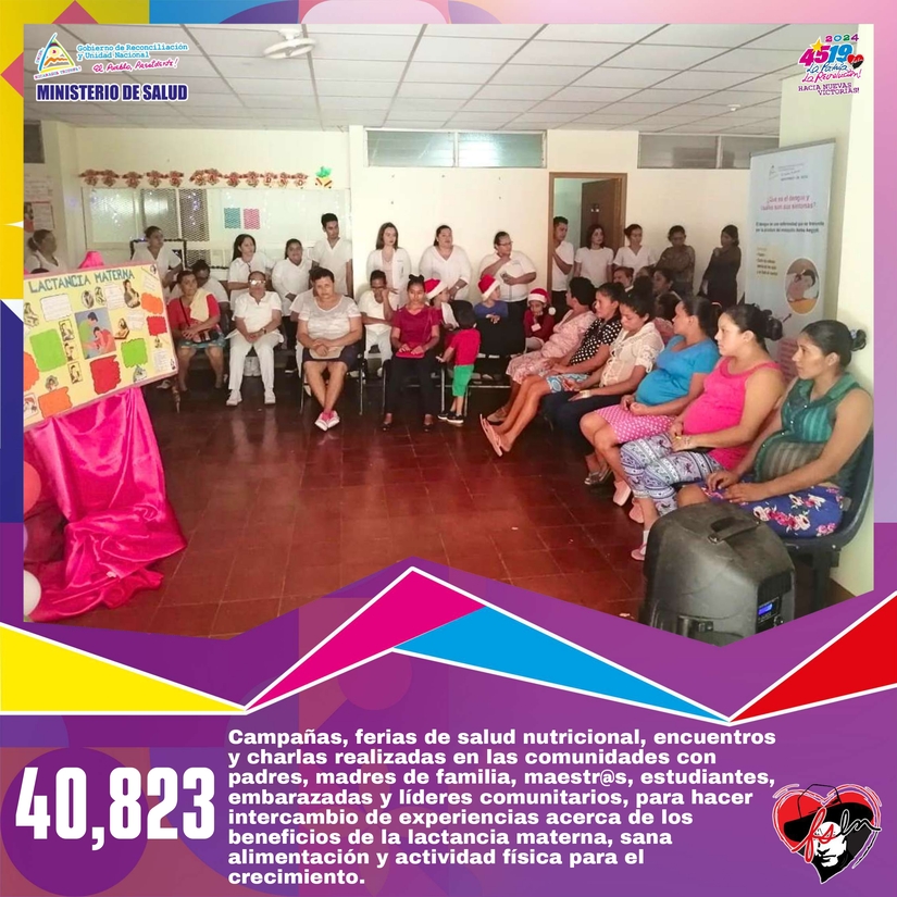 • 40,823 Campañas, Ferias de Salud Nutricional, Encuentros y Charlas realizadas en las comunidades con padres, madres de familia, maestr@s, estudiantes, embarazadas y líderes comunitarios, para hacer intercambio de experiencia acerca de los beneficios de la lactancia materna, sana alimentación y actividad física para el crecimiento.