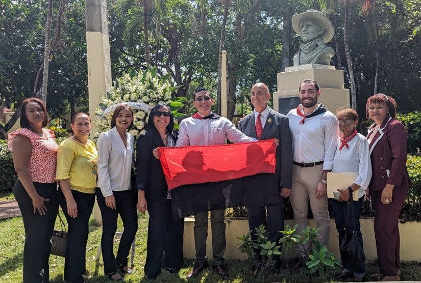 Hoy Martes 14 de Mayo del 2024, en conmemoración al 129 Aniversario del nacimiento del General de Hombres y Mujeres Dignas y Libres, Augusto César Sandino, la Embajada de Nicaragua acreditada en República Dominicana en conjunto con la Universidad Autónoma de Santo Domingo (UASD), colocaron una ofrenda floral en el busto del General Sandino, ubicado en el recinto central de la Universidad.