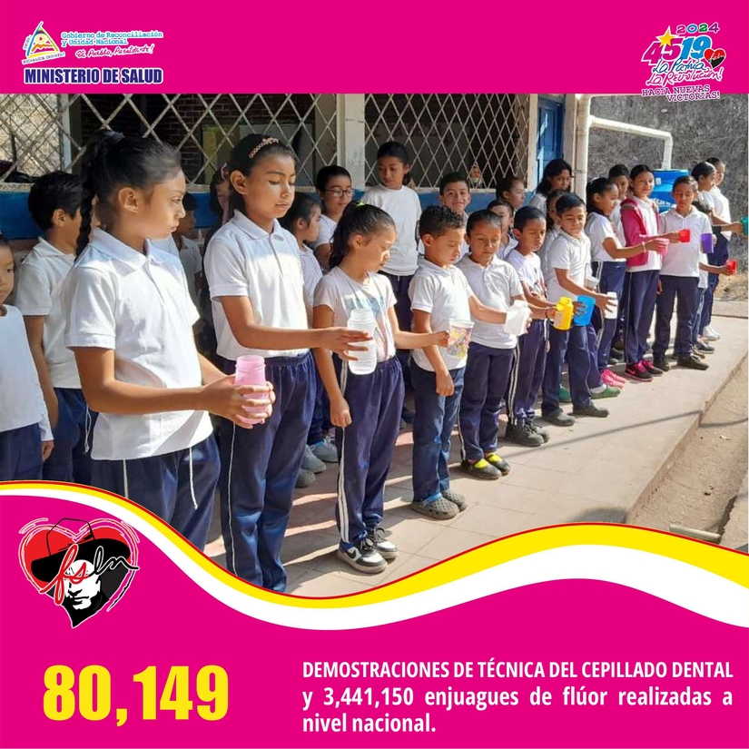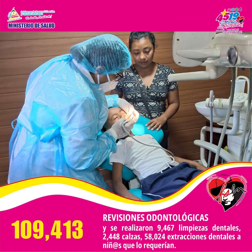 • 109,413 valoraciones dentales; además, hemos realizado 9,467 limpiezas dentales, 2,448 calzas, 58,024 extracciones, 80,149 demostraciones de la buena técnica del cepillado dental y 3,441,150 enjuagues de flúor.