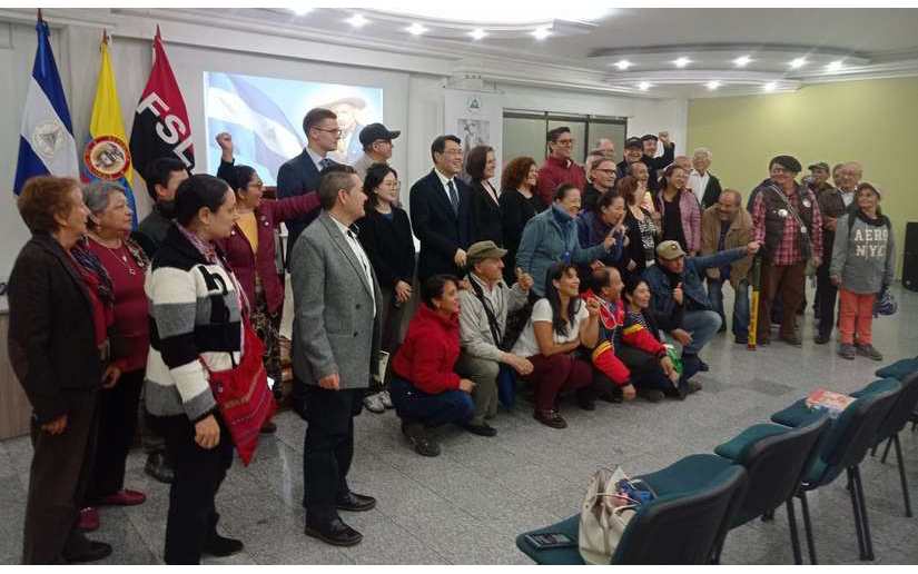 Este Miércoles 15 de Mayo del 2024, el Gobierno de Reconciliación y Unidad Nacional a través de su Embajada en la República de Colombia, rindió un emotivo homenaje al General de Hombres y Mujeres Libres, Augusto César Sandino, en el 129 Aniversario de su Nacimiento Luminoso, en el Auditorio de la Cooperativa del Magisterio Codema en Bogotá, el Compañero Harold Delgado, Embajador de República Nicaragua en Colombia, trasmitió los saludos del Presidente Comandante Daniel Ortega y de la Vicepresidenta Compañera Rosario Murillo, a la actividad asistieron miembros del Cuerpo Diplomático acreditado, senadores, poetas, docentes y compañeros de Solidaridad, el Compañero Delgado destacó el Legado Victorioso del General Sandino y sus aportes a la conciencia libertaria de América Latina, también se Presentó el material Audiovisual titulado “Sandino Luz de la Revolución” del cineasta nicaragüense Marcio Vargas.