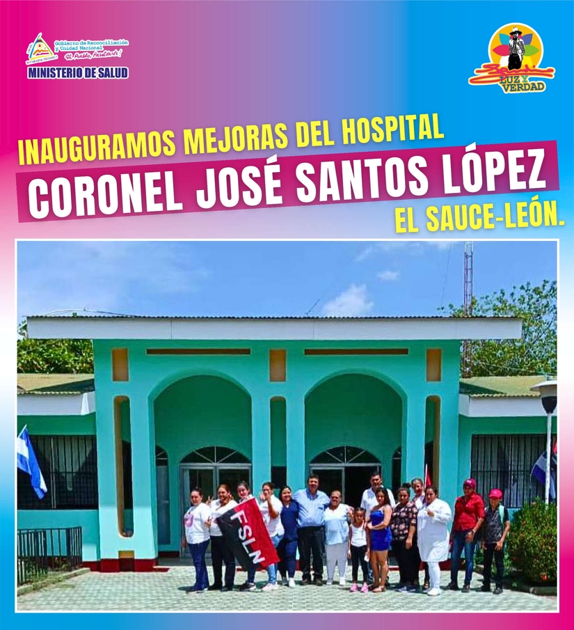 También mañana Viernes, entregaremos mejoramiento del Hospital Primario Coronel José Santos López, de El Sauce-León para atender en mejores condiciones a 32 mil habitantes de ese municipio. Inversión 1.8 millones de córdobas.