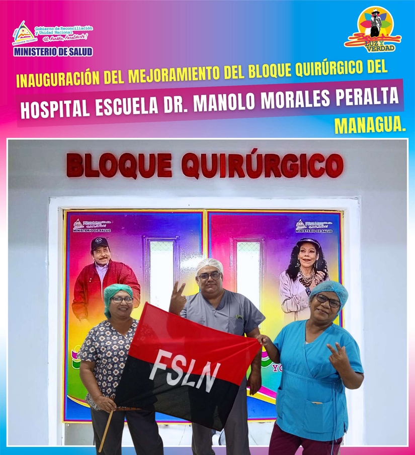 Mañana Viernes, inauguraremos mejoras en los quirófanos del Hospital Escuela Doctor Manolo Morales de Managua, esto nos permitirá realizar en mejores condiciones 15 mil cirugías que cada año realizamos en esta Unidad de Salud. Las obras incluyen el cambio total del sistema de climatización del bloque quirúrgico, la instalación del sistema eléctrico y cielo raso. Inversión 21.7 millones de córdobas.