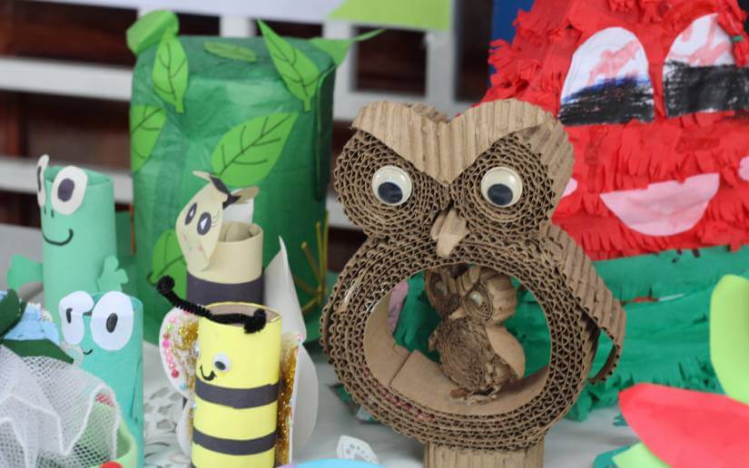 La estudiante Josmary Saraí Alvarado Ochoa, del noveno grado, explicó que su stand consistió en el reciclaje con el material de cartón.
