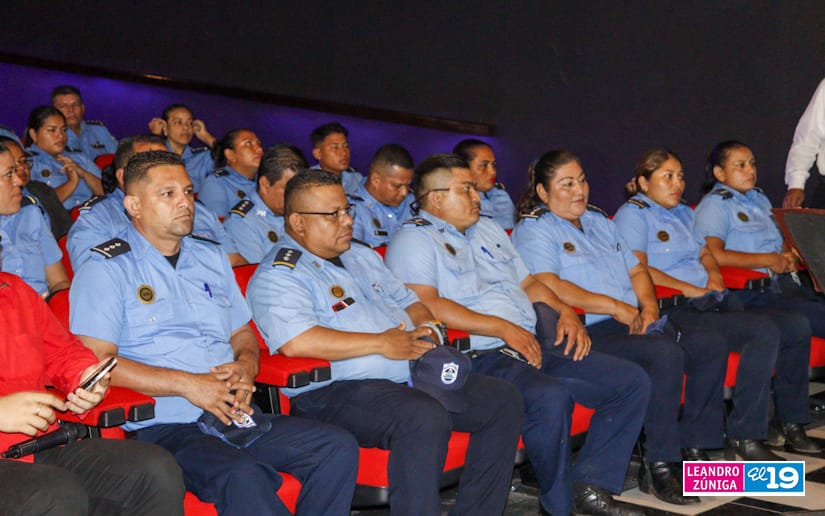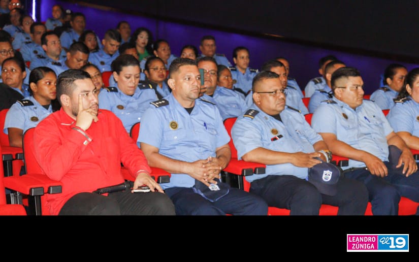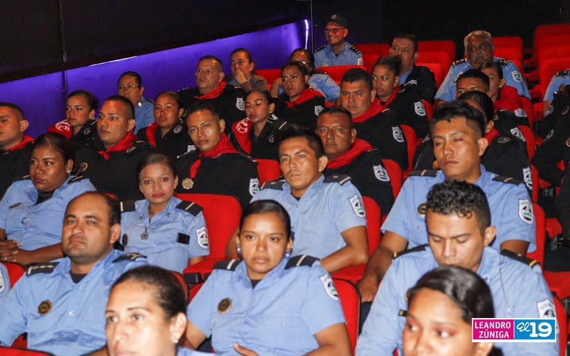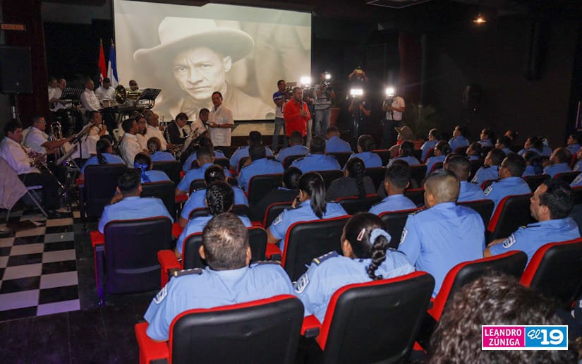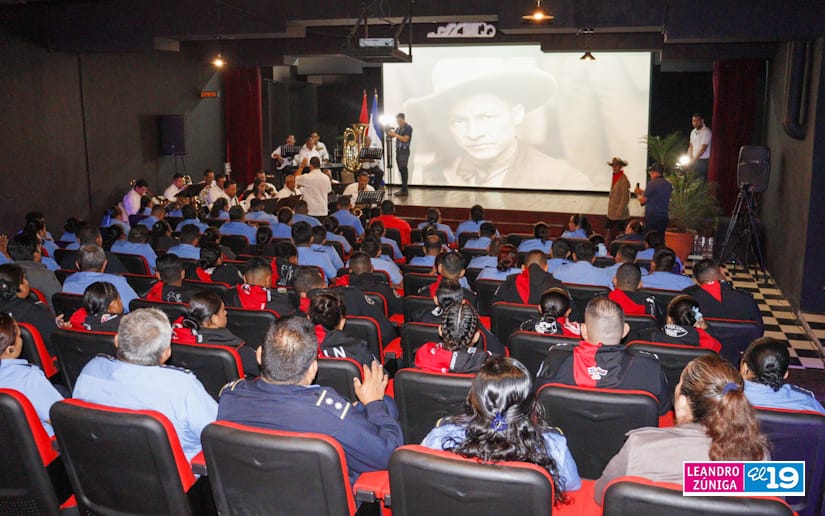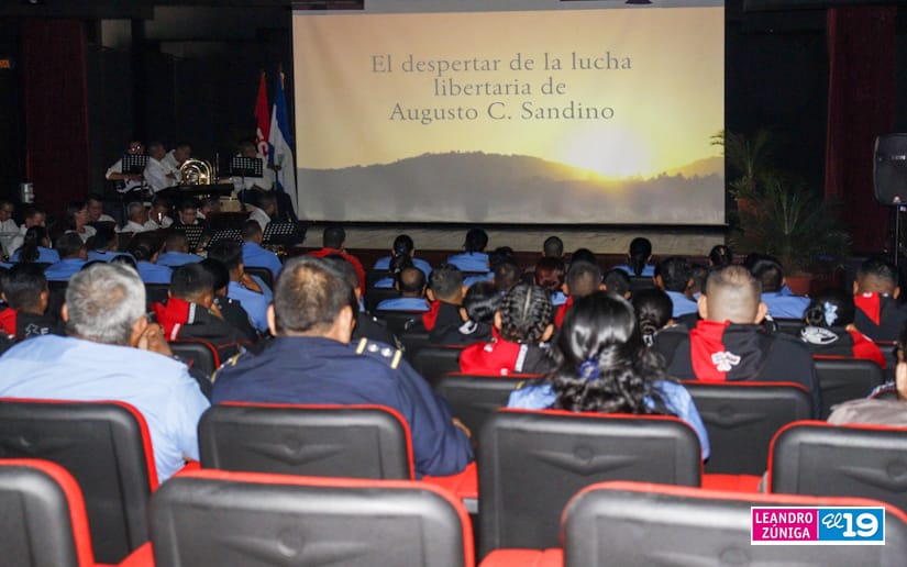 Hombres y mujeres que forman parte de la Policía Nacional pudieron disfrutar este viernes de la presentación de un documental acompañado de diferentes muestras artísticas para saludar el 129 aniversario del natalicio del General Augusto C. Sandino.