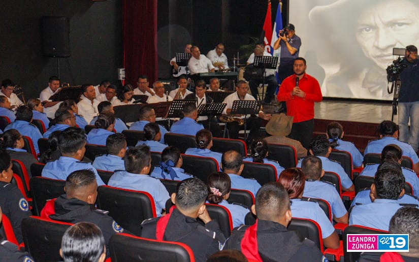 “La máxima representación del Frente Sandinista, el máximo estandarte de los nicaragüenses, el máximo Héroe Nacional que ha nacido en este suelo pinolero. Hoy a 129 años del natalicio luminoso de ese General de Hombres y Mujeres Libres, hemos coordinado con la división patriótica de nuestra gloriosa Policía Nacional, esta presentación de un documental, este concierto de música testimonial, revolucionaria, nacional a cargo de la orquesta sinfónica de nuestra alcaldía y también exposiciones, exposición itinerante de fotografía y biografías de nuestros héroes nacionales”, mencionó.