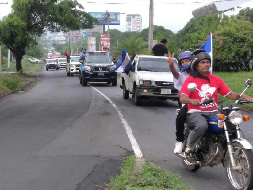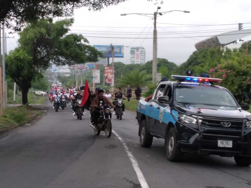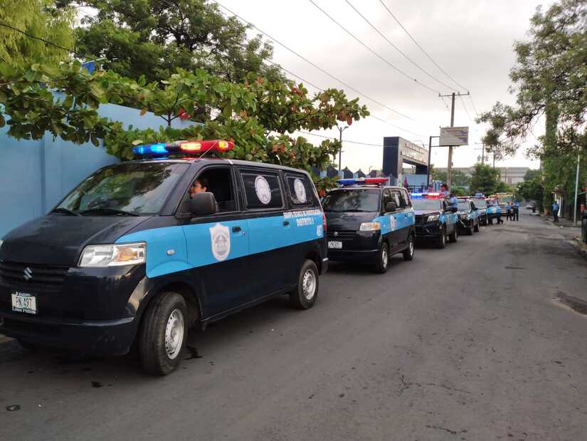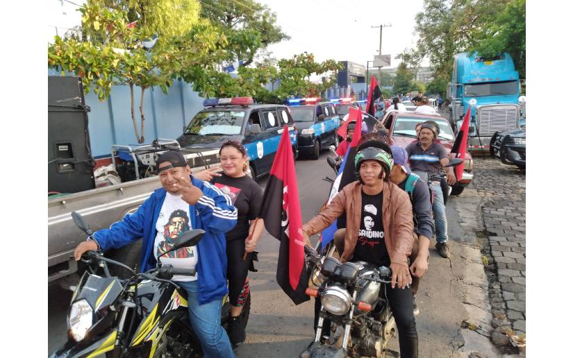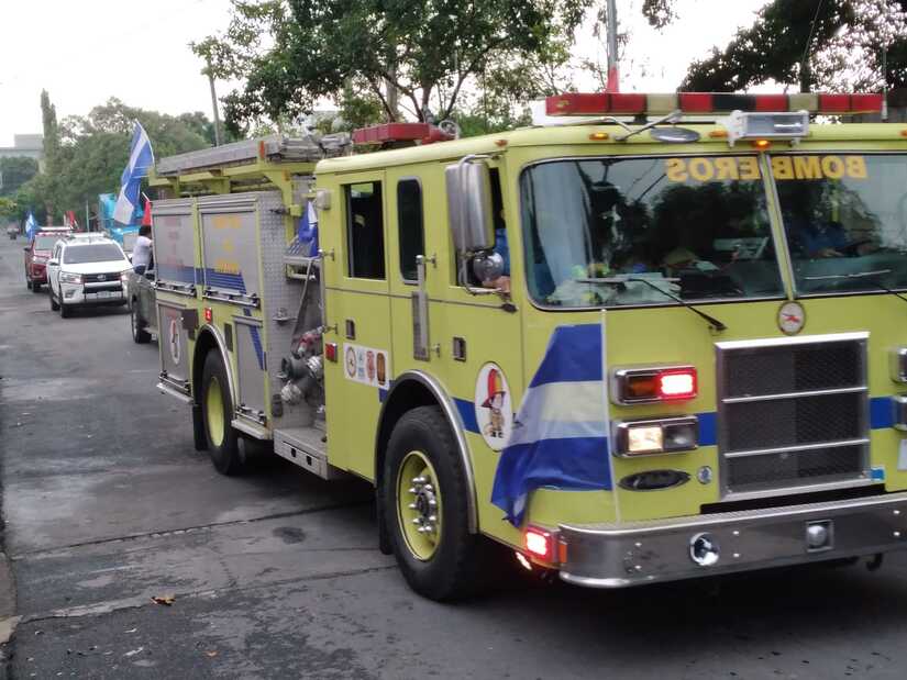 En el Distrito I de Managua, Bomberos Unidos con el acompañamiento de Policía Nacional y Unidades de Victorias recorrieron calles y barrios en motocicletas, vehículos, patrullas y medios de bomberos ondeando las banderas azul, blanco y azul y rojinegra recordando también el legado del General Sandino.