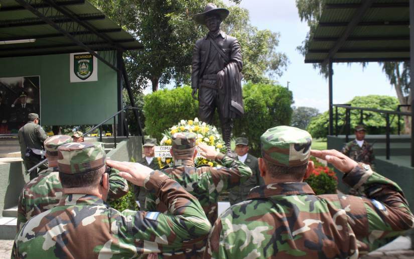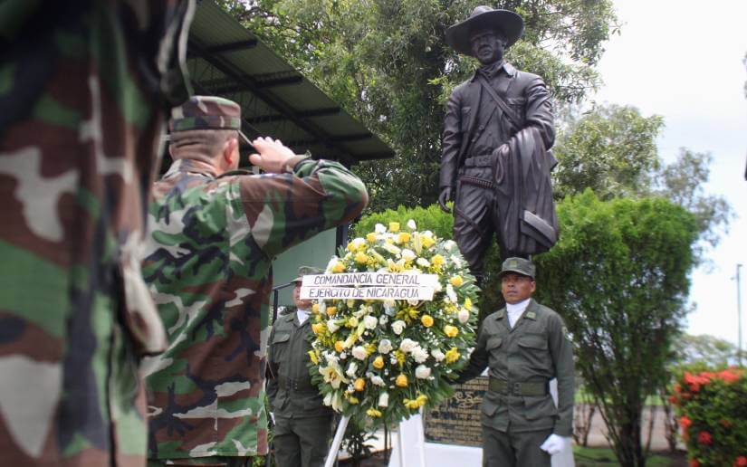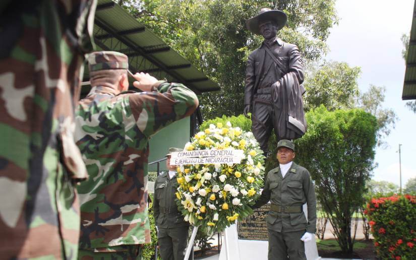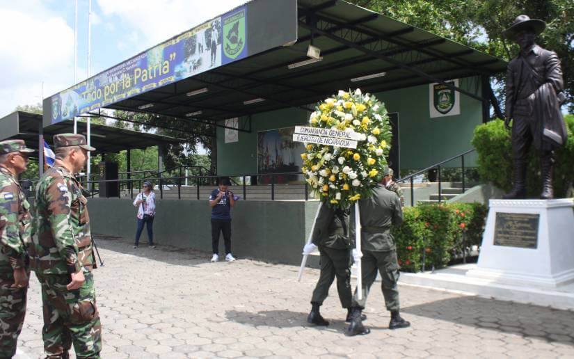 Con un acto y ofrenda floral colocada en el monumento del General Augusto C. Sandino ubicado en la Brigada de Infantería Mecanizada que lleva su nombre, el Ejercito de Nicaragua rindió homenaje al General de Hombres y Mujeres Libres, al cumplirse este 18 de mayo 129 años de su natalicio.