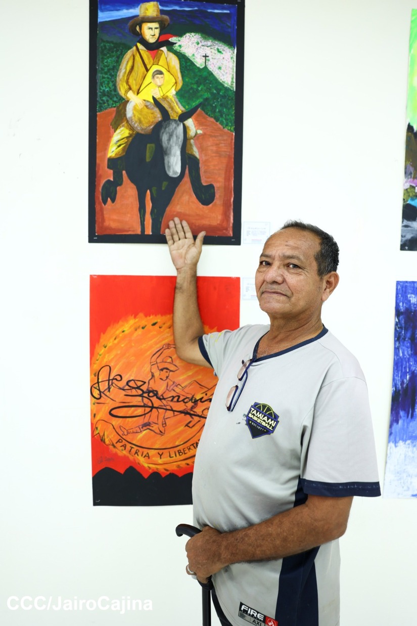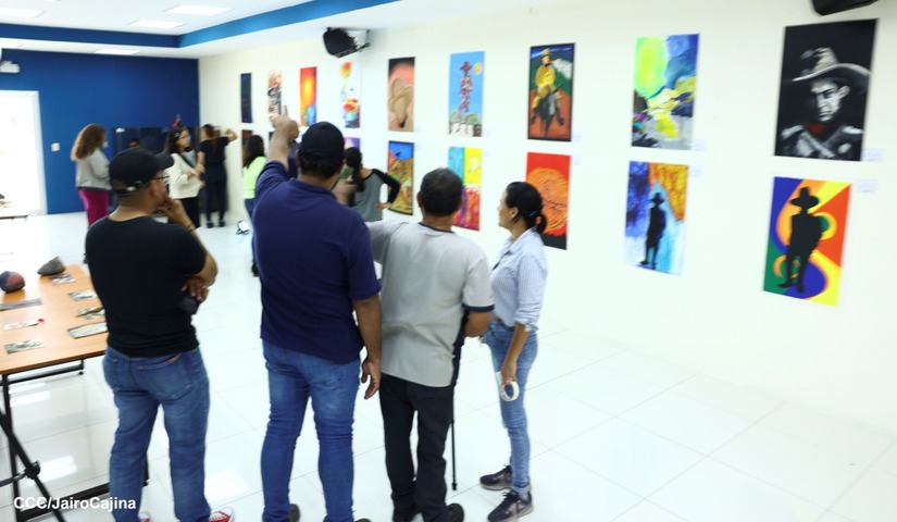 La exposición de artes plásticas "Sandino, Luz, Vida y Verdad", reúne 72 obras de arte realizadas por los estudiantes del curso de Dibujo y Pintura Artística y Técnicas de Muralismo.