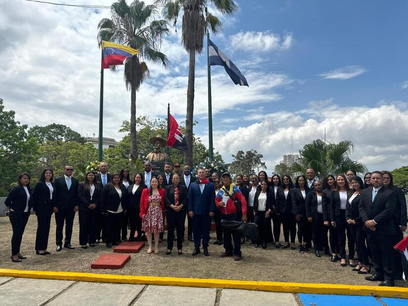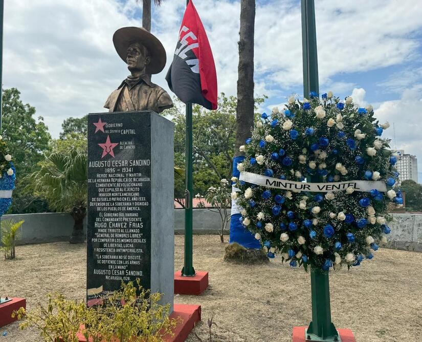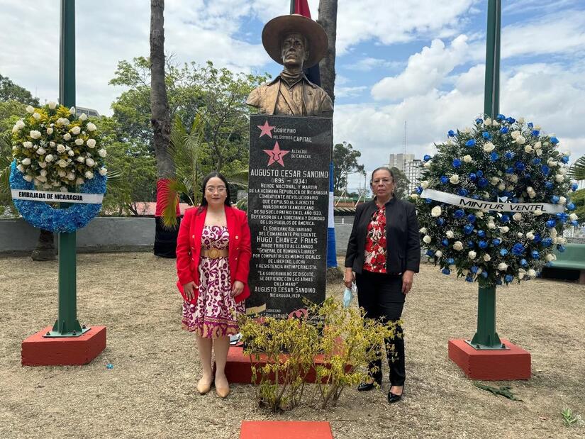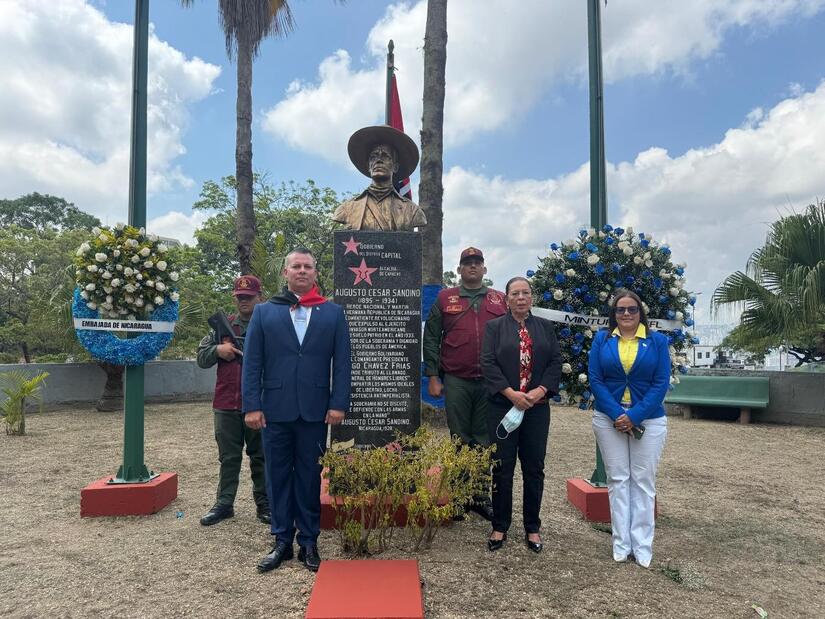 En ocasión del 129 Aniversario del Natalicio del General Sandino, la Embajada de la República de Nicaragua ante la República Bolivariana de Venezuela realizó este viernes 17 de mayo de 2024, un Acto Político Cultural con derroche de canto, baile y poesía, en Caracas, en la Plaza Parque General Augusto C. Sandino, contiguo a Estación del Teleférico de Maripérez.