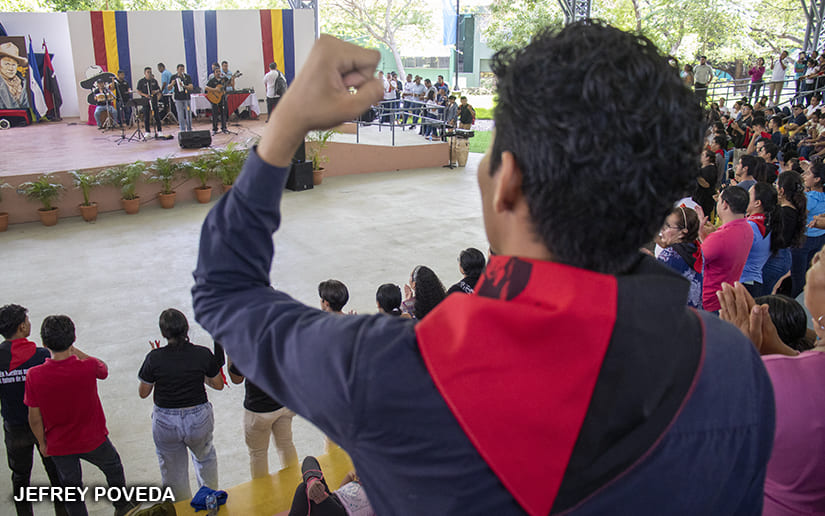 "A 129 años del natalicio luminoso del héroe más grande que ha parido Nicaragua, el General de Hombres y Mujeres Libres, la Dirección de Cultura y Patrimonio Histórico, desde esta universidad del pueblo, UNAN-Managua, nos encontramos en coordinación, celebrando a lo grande el natalicio de nuestro General de Hombres y Mujeres Libres con este hermoso festival que se está realizando en este anfiteatro donde se han reunido cientos de jóvenes", comentó.