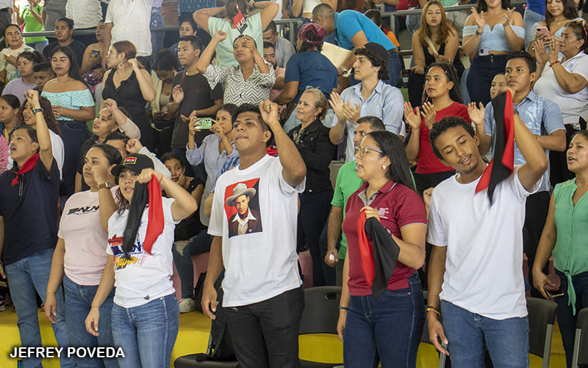 "Hablamos del General Sandino, un hombre de armas tomar. Un hombre que nos enseñó que la lucha por la defensa de la autonomía, de la autodeterminación, de la defensa permanente por la paz, son derechos irrenunciables, son derechos que el pueblo nicaragüense debe sostener en el tiempo, son derechos que el Comandante Daniel y la Compañera Rosario nos han enseñado en esa muestra de amor, esa muestra permanente para que la juventud universitaria, para que la Unión Nacional de Estudiantes esté rememorando, esté rindiendo homenaje a nuestro Héroe Nacional como lo es el General Sandino. Esa consigna de patria libre o morir para nosotros jóvenes universitarios significa que seamos estudiantes destacados, que seamos estudiantes deportistas, que seamos estudiantes ambientalistas, que seamos estudiantes que comuniquemos con la verdad, que seamos estudiantes que nos estemos formando de manera integral", compartió.