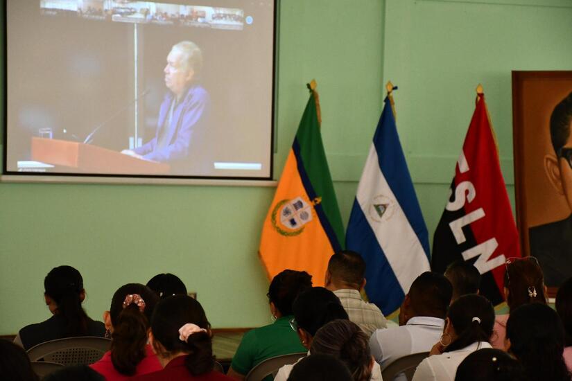 Esta conferencia se realizó en el Auditorio Fernando Gordillo Cervantes de la UNAN- Managua en el que participaron activamente de manera presencial y virtual más de 4,000 estudiantes, docentes y personal administrativo de las universidades miembros del CNU quienes rindieron homenaje a su pensamiento y legado.