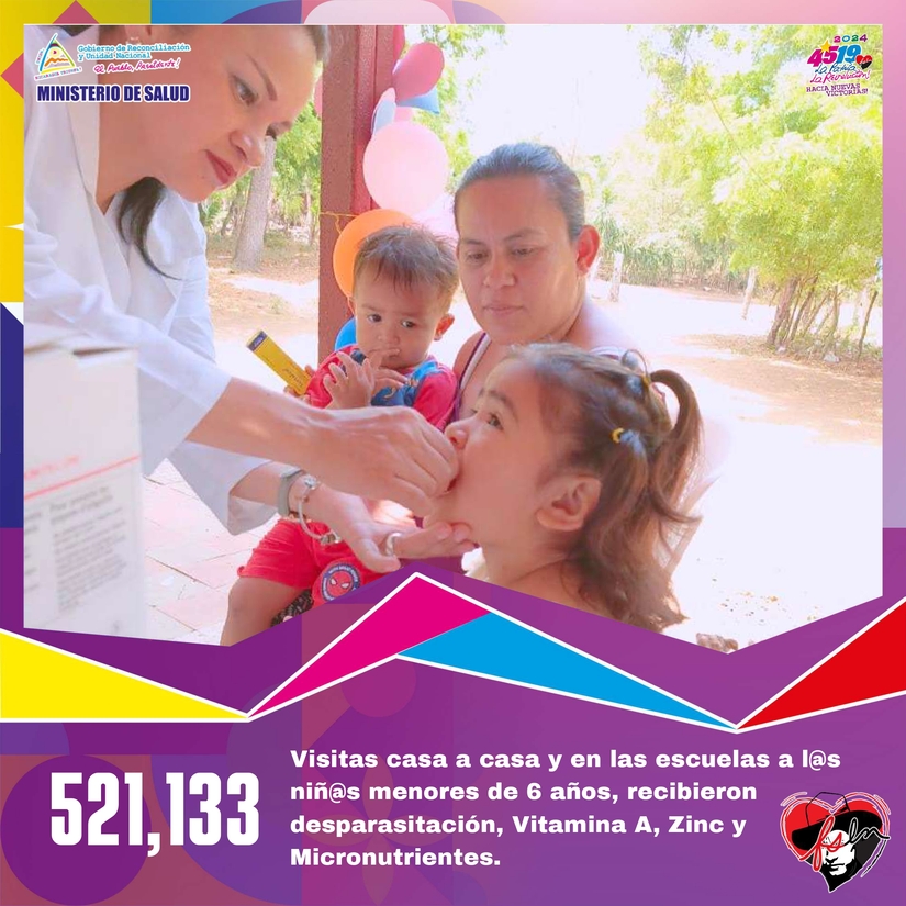• 521,133 visitas Casa a Casa y en Escuelas a l@s Niñ@s menores de 6 años de edad, recibieron desparasitación, vitamina A, zinc y micronutrientes.