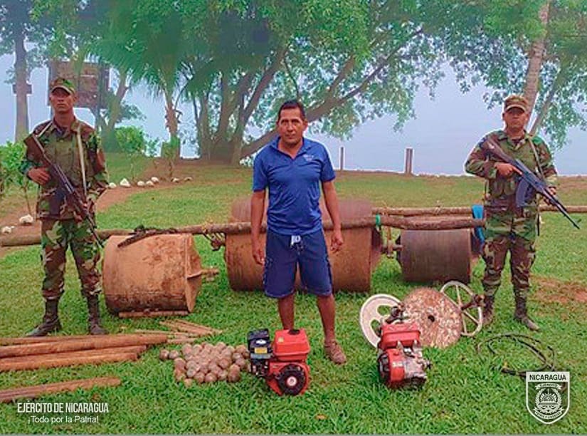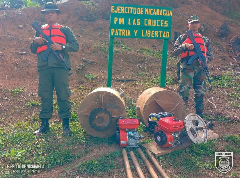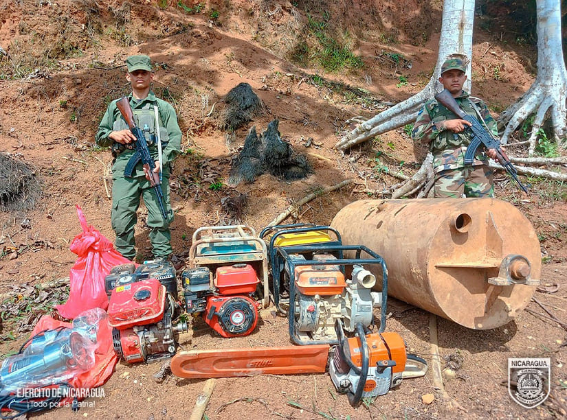 2. En los sectores de Boca de Bartola, Caño La Venada, Las Cruces y El Gavilán, se ocuparon 7 tombolas metálicas, 7 motores estacionarios, 4 generadores eléctricos, 5 bombas de agua, 3 motosierras, 3 rotomartillos, 130 balines trituradores, 50 libras de cianuro y 300 sacos de material para procesamiento, medios que pretendían ser empleados en labores de mineria ilegal, violando las leyes establecidas en el país.