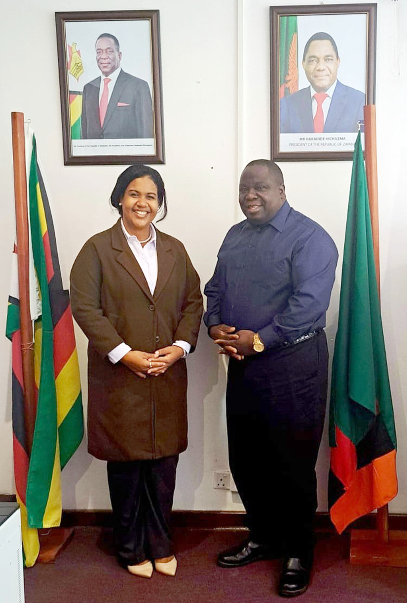 Durante esta semana, la Compañera Nadeska Cuthbert, Encargada de Negocios de la Embajada de Nicaragua en Zimbabwe, realizó Visitas de Cortesía a los Embajadores de Sudáfrica, Zambia, Mozambique, Namibia y Botswana, acreditados en la República de Zimbabwe, con el objetivo de presentar nuestra Embajada en Harare, la cual abrimos el pasado 18 de Febrero 2024.