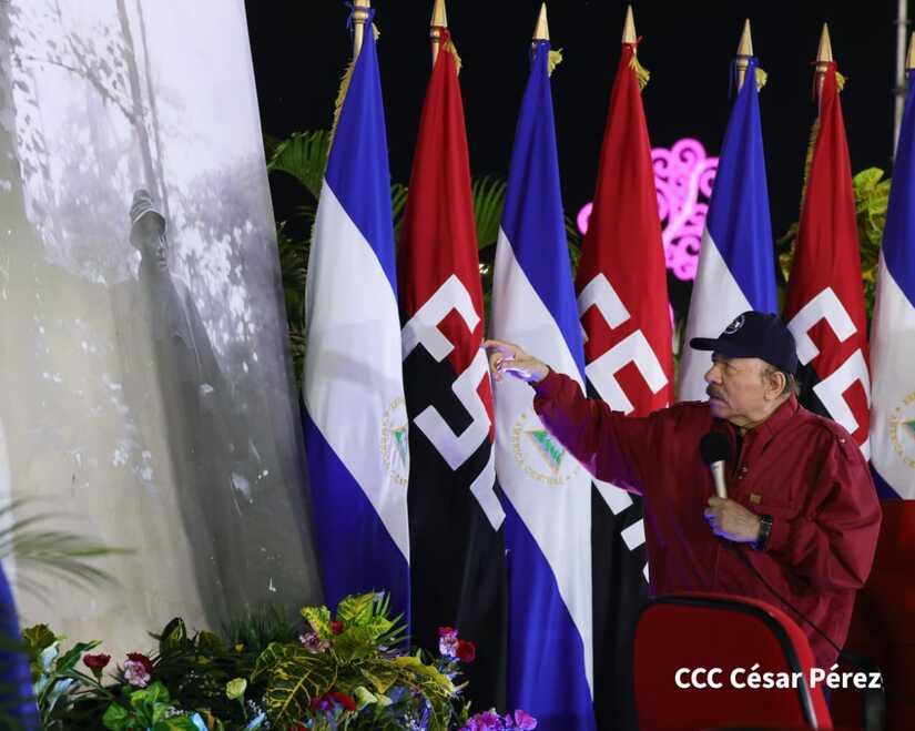 Recordó que "nuestro General Sandino, cuando los derrota, porque ellos no pueden derrotar a Sandino, y como no pueden derrotar a Sandino no quieren seguir teniendo muertos y prefieren retirarse, y cambian de estrategia y ponen de Presidente a Sacasa, y ponen de Jefe del Ejército a Somoza, un Ejército que estaba dirigido sí por Oficiales del Ejército yanqui, no es que fue un Ejército dirigido por Somoza con soldados nicaragüenses. No, eso estaba dominado por el Ejército yanqui, armado por el Ejército yanqui, entrenado por el Ejército yanqui, con un destacamento aquí del Ejército yanqui, una base, Nicaragua era una base del Ejército yanqui. Entonces Sandino en condiciones muy difíciles, porque con quién iba a combatir, se desapareció de la vista el enemigo número uno, y él mismo lo dijo: Ahora nos toca luchar contra un enemigo que el Pueblo no está viendo, ni sintiendo; y esto es más peligroso, dice. Y ahí fue donde él aceptó negociar".