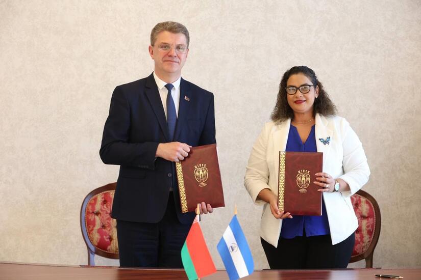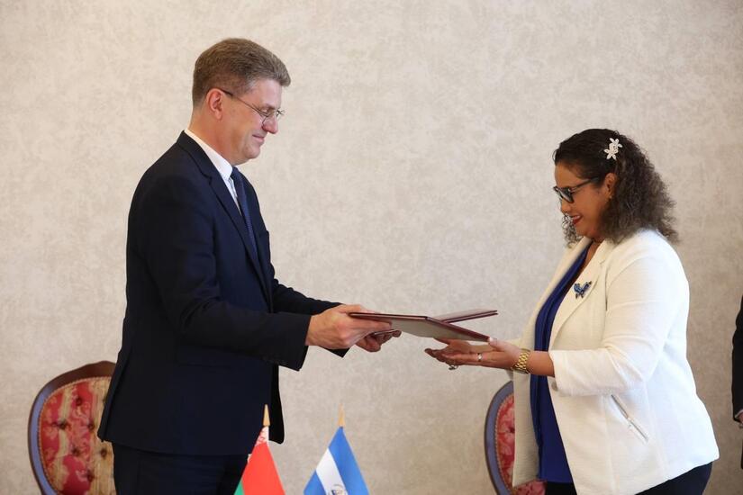 En el marco de las reuniones, la Compañera Rueda junto con el Compañero Kújarev Vladirmir Evghénievich Presidente del Comité Ejecutivo de la Ciudad de Minsk, firmaron un Acuerdo entre la Alcaldía de Managua y el Comité Ejecutivo de la Ciudad de Minsk sobre la Cooperación Comercial, Económica, Científico-Técnica y Cultural.