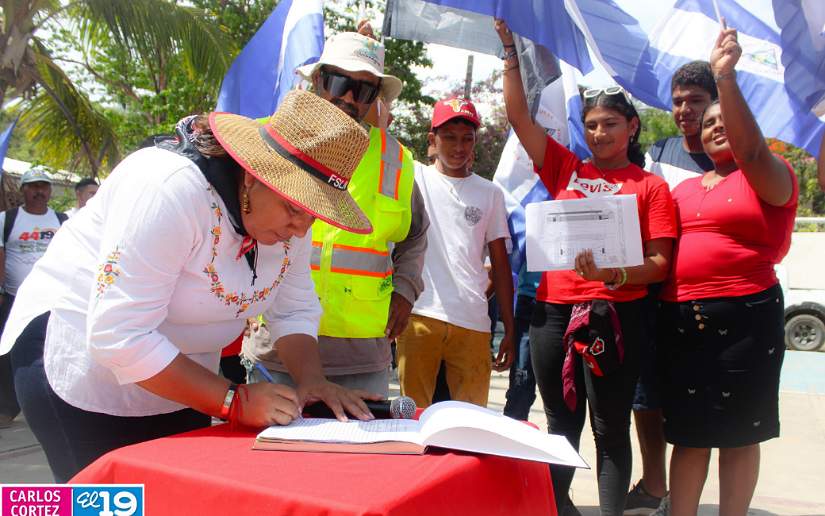 Luego en la comunidad de El Ostional, en el marco de esta conmemoración, la Alcaldía de San Juan del Sur, colocó la primera piedra de lo que será la cancha multiuso.