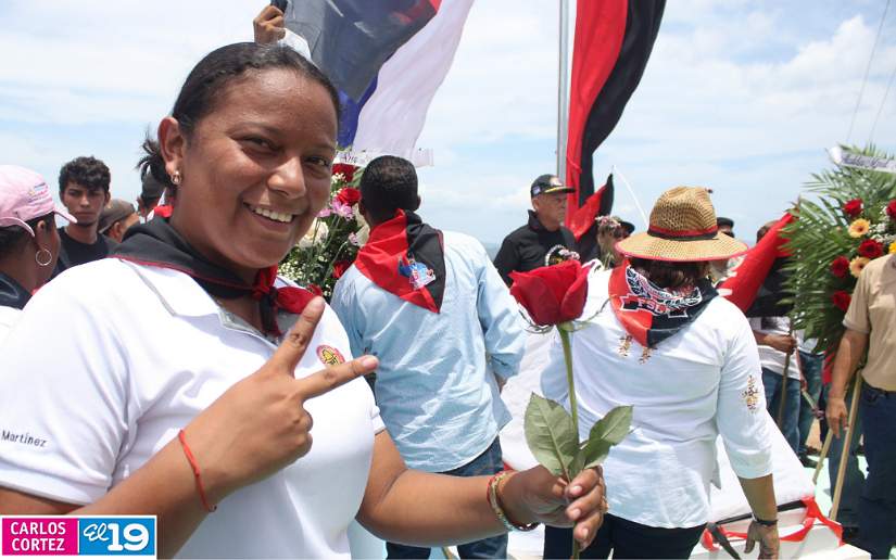 "Aceptamos esta antorcha como la luz que ilumina ese nuevo caminar, esos nuevos tiempos de victoria, de paz y de unidad, que nos guía el Comandante Daniel y la Compañera Rosario. Hoy a 45 años de la toma de esta Colina y El Naranjo, la Juventud Sandinista se compromete a seguir el legado con amor de nuestro General Sandino, de nuestro Comandante Tomás Borge, del Comandante Carlos para seguir luchando en cada una de las victorias y seguir adelante siempre más allá", declaró Nayeli Martínez, coordinadora de Juventud Sandinista.