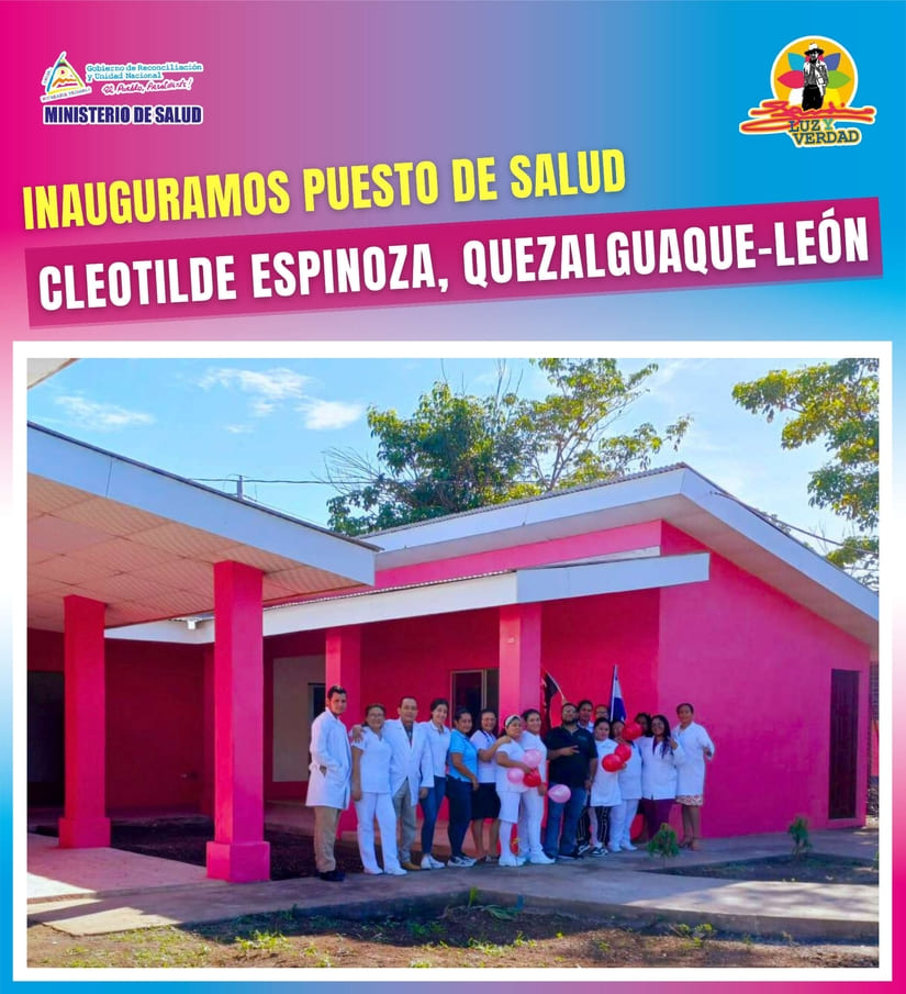 También este Miércoles inauguramos el Puesto de Salud “Cleotilde Espinoza” en Quezalguaque, León, que nos permitirá atender a 4,220 protagonistas de 9 Comunidades y 3 Barrios de ese Municipio (Inversión 1.4 millones de córdobas).