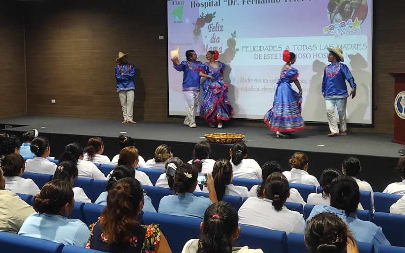 Con mucha alegría y gozo, alrededor de 100 mujeres trabajadoras de las diferentes áreas del Hospital Fernando Vélez Paiz celebraron con un acto cultural el Día de las Madres.
