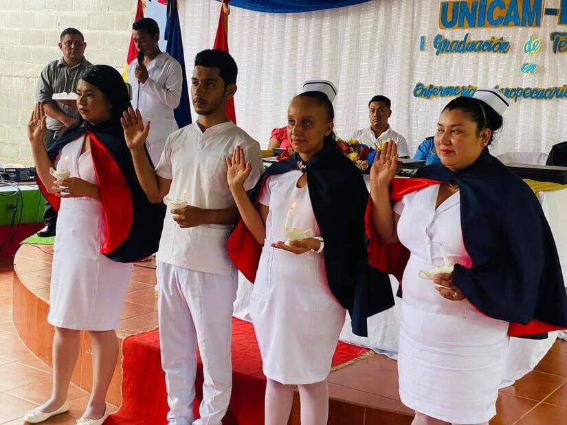 La Universidad Nacional Autónoma de Nicaragua, León (UNAN-León) realizó la entrega de títulos a protagonistas del programa Universidad en el Campo, El Cuá-Jinotega, de las carreras de Técnico en Enfermería Profesional, Agropecuaria y Agronegocios. Estos graduados representan el firme compromiso de la UNAN-León con el proceso de Revolución Educativa que promueve el Gobierno de Reconciliación y Unidad Nacional, presidido por nuestro Comandante Daniel y la Compañera Rosario.