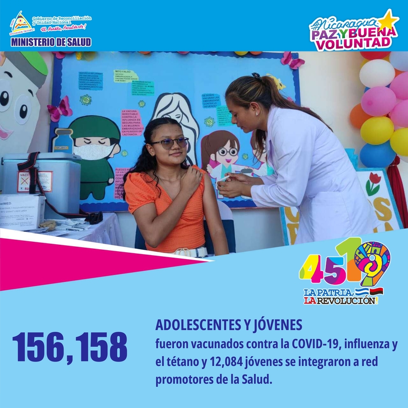 • 156,158 adolescentes y jóvenes vacunados contra la COVID-19, influenza y el tétanos.