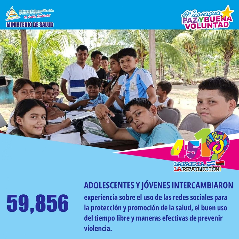 • 59,856 adolescentes y jóvenes intercambiaron experiencia sobre el uso de las redes sociales para la protección y promoción de la salud, el buen uso del tiempo libre y maneras efectivas de prevenir violencia.