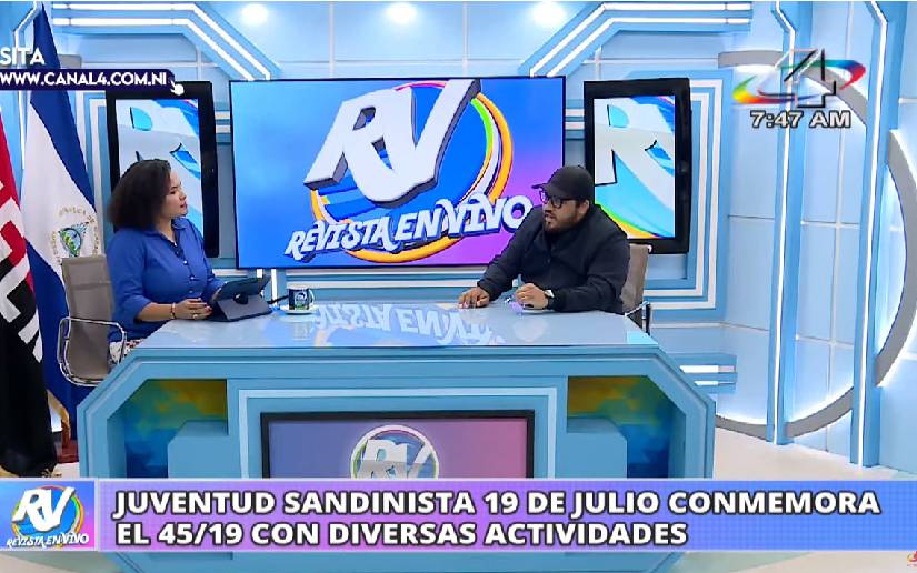 El compañero Alex Galeano, coordinador nacional de la Promotoría Solidaria, de la Juventud Sandinista 19 de Julio, brindó detalles sobre las diferentes acciones que se están realizando en celebración del 45/19 de la Revolución Sandinista.