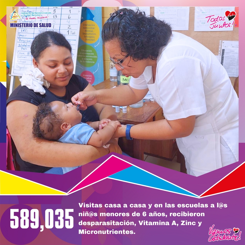 • 589,035 visitas Casa a Casa y en Escuelas, a l@s Niñ@s menores de 6 años, para recibir desparasitantes, Vitamina A, Zinc y Micronutrientes.