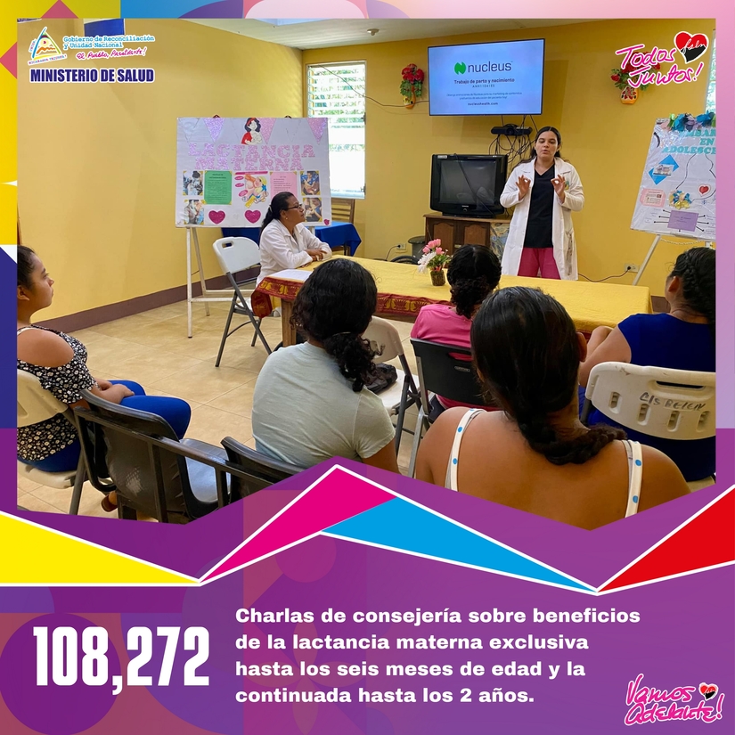 • 108,272 Charlas de Consejería sobre beneficios de la lactancia materna exclusiva hasta los seis meses de edad y la continuada hasta los 2 años.