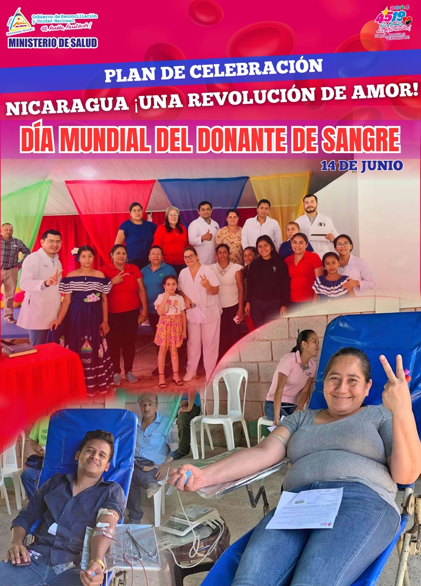 El próximo 14 de Junio, se celebra el Día Mundial del Donante de Sangre. Nuestro Buen Gobierno Sandinista ha promovido la donación voluntaria, logrando que desde año 2011, Nicaragua sea reconocida como uno de los Países de la Región de las Américas, destacado por lograr que toda la donación de sangre sea voluntaria.