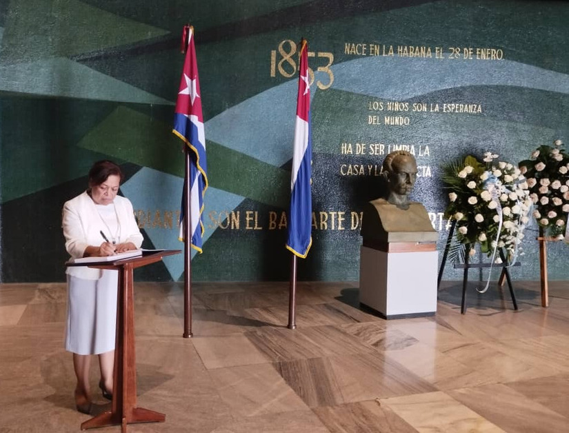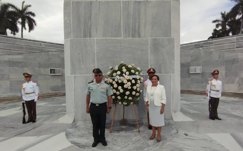 Al concluir la entrega de credenciales, la Embajadora Morales en nombre del Pueblo y Gobierno de Nicaragua, acompañada del Agregado Militar de Nicaragua, Coronel Enrique Pavón, depositó una ofrenda floral en el Memorial José Martí.