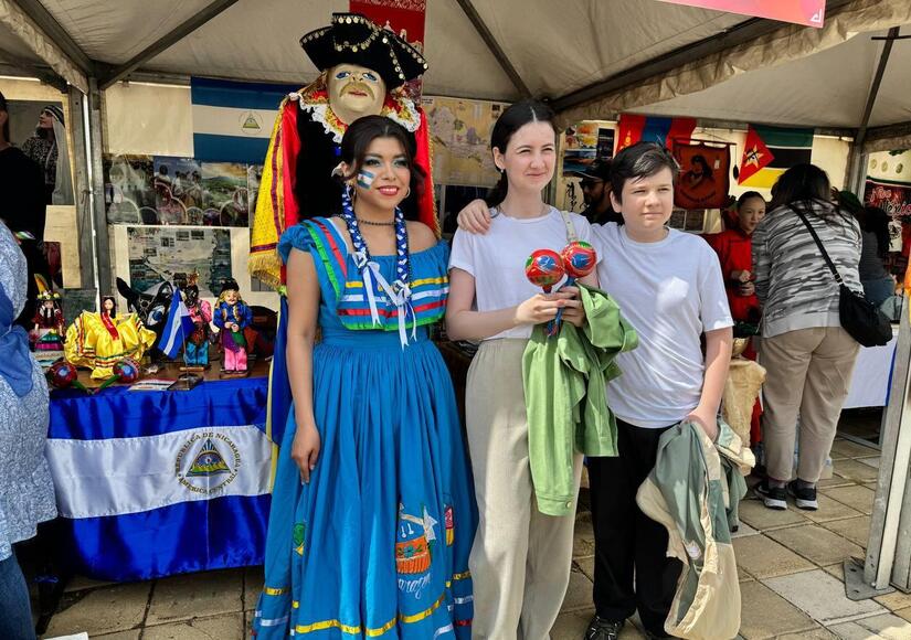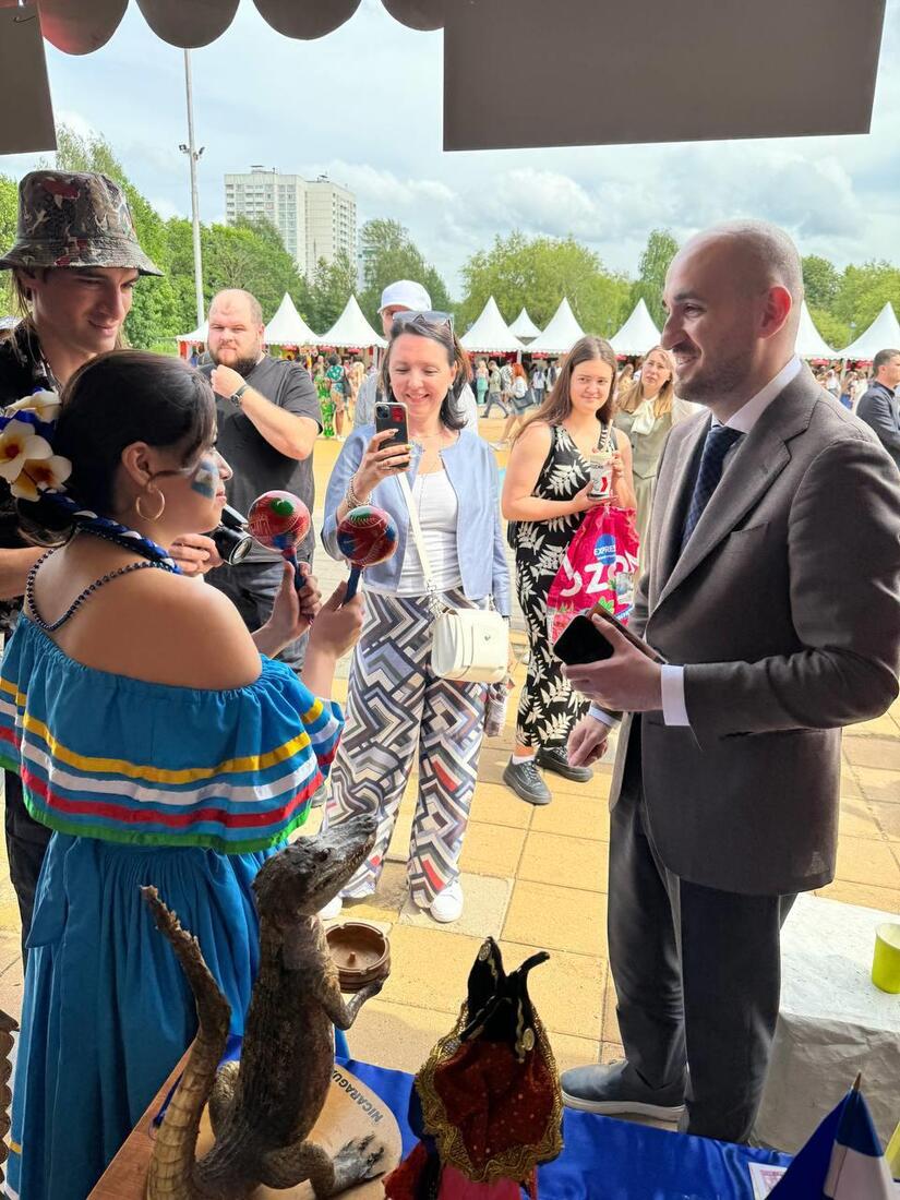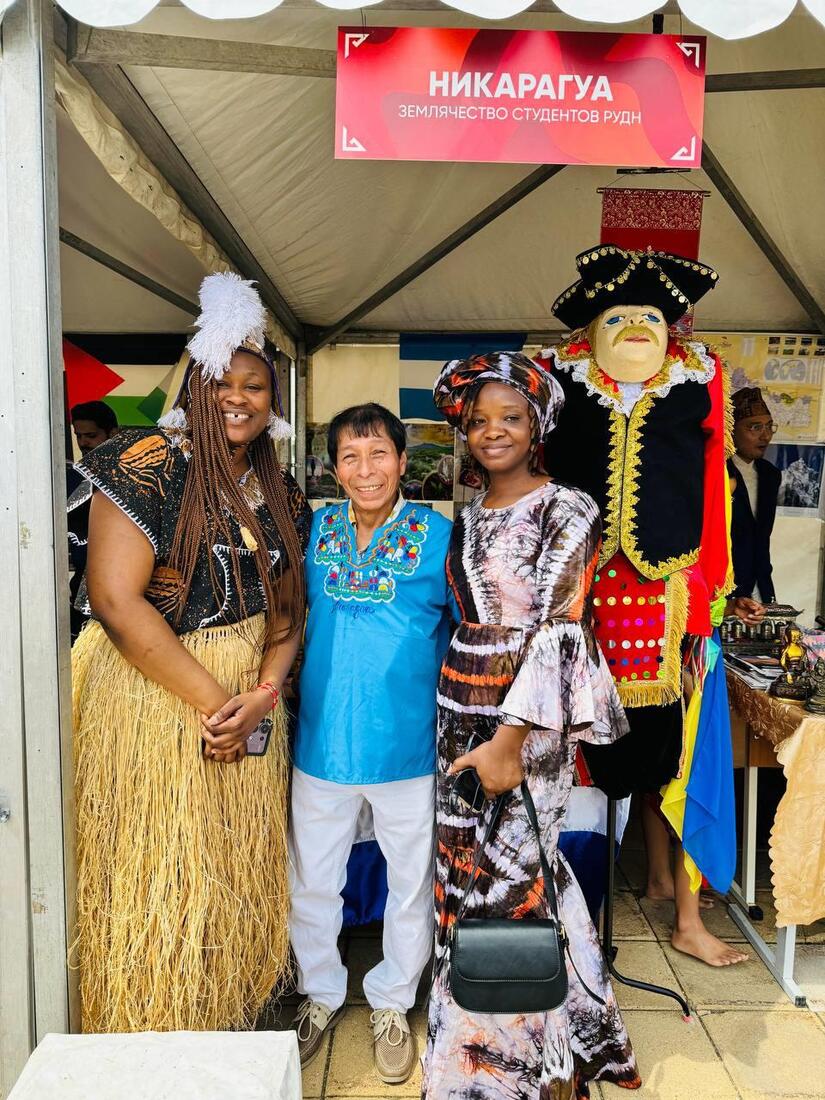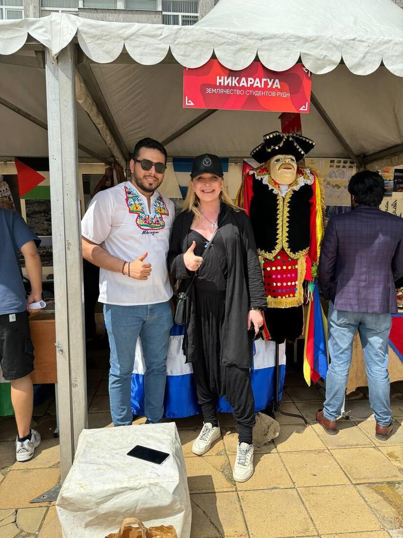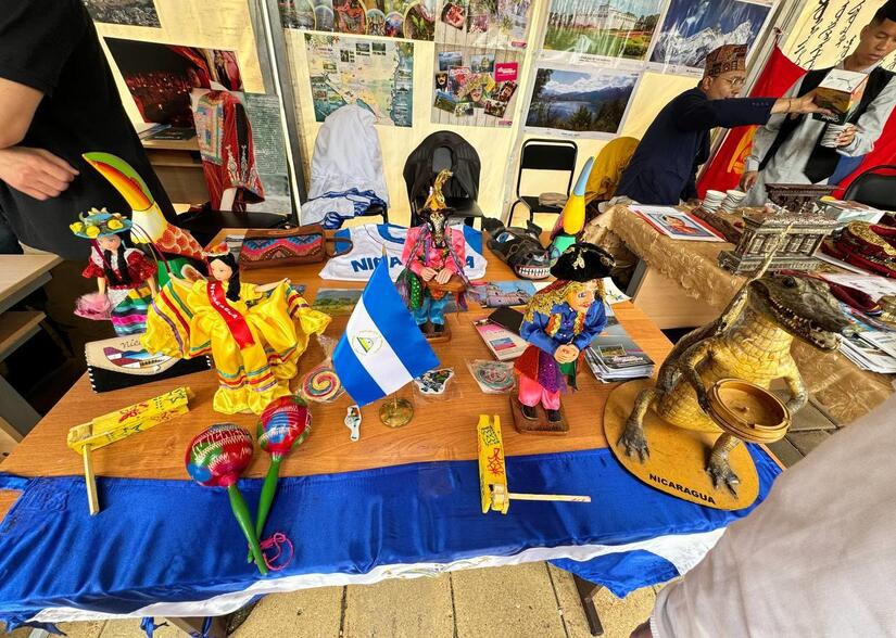 En el marco de este festival la Asociación de Estudiantes Nicaragüenses con el apoyo de la Embajada de Nicaragua en la Federación de Rusia, realizaron un vistoso stand representativo de nuestro País, en el que exhibieron estatuillas y máscaras de El Güegüense y Macho Ratón, artesanías de cuero y madera de balsa de Solentiname, maracas de jícaro, exóticos cocodrilos y tucanes que captaron la atención de los visitantes.