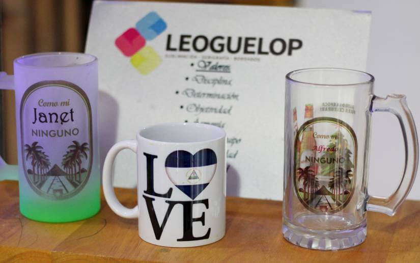 Por su parte, Leonardo Guerrero, del emprendimiento Multiservicios y Sublimaciones Leo Guelo, comentó "nosotros como Leo Guelo ofrecemos una variedad de productos y servicios dedicado a la población nicaragüense, entre ellos, trabajamos lo que es la sublimación, la serigrafía y los bordados. Nosotros durante este mes de junio estaremos promocionando diversos combos alusivos al mes del padre desde 400 córdobas que le incluyen una camiseta, una gorra, una taza".