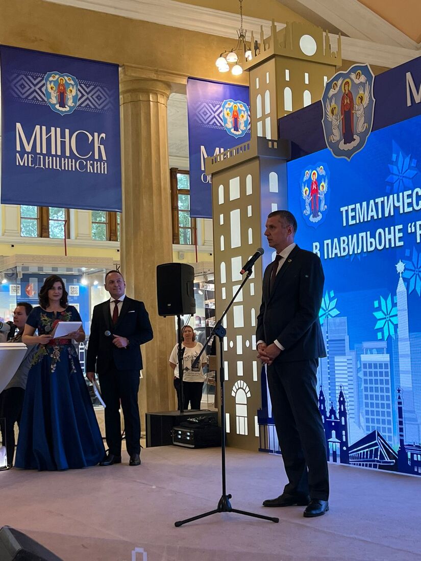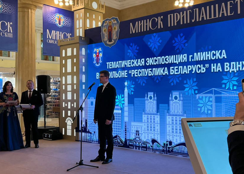 La Presentación de la Capital bielorrusa Minsk se celebró en el pabellón de Belarús de la Exposición de Logros Económicos Nacionales “VDNJ” en Moscú, Rusia. En la actividad intervinieron con breves palabras el Presidente del Comité Ejecutivo de la Ciudad de Minsk, Vladímir Kújarev; el Embajador de Belarús en Rusia, Dmitriy Krutoy; el Secretario de Estado del Estado de la Unión de Rusia y Bielorrusia, Dmitriy Mezentsev, así como los Gobernadores de varias Ciudades rusas.