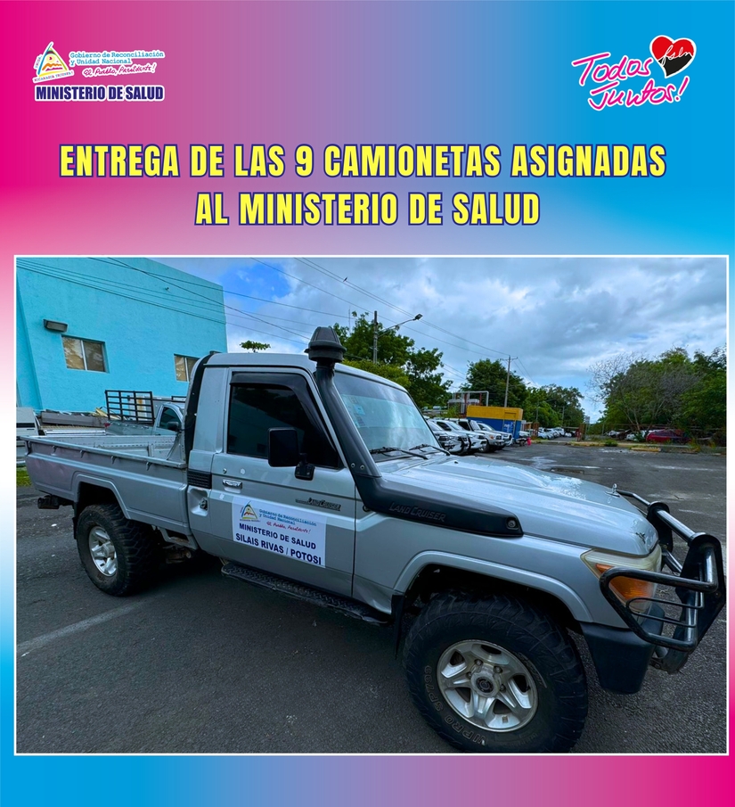 Hoy Martes 19 de Junio, el Ministerio de Salud entregará las 9 camionetas asignadas, con sus Documentos Legales y su respectiva rotulación, para continuar fortaleciendo las acciones de promoción de la salud y prevención de enfermedades.