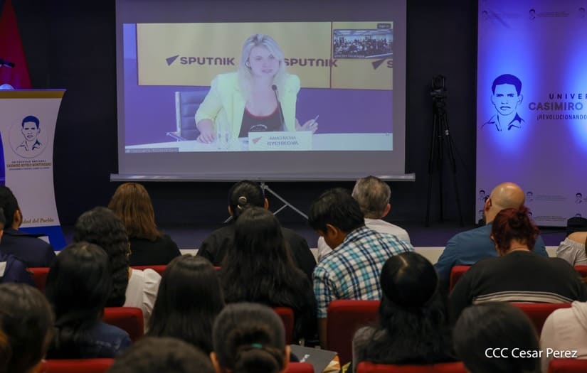La compañera Anastasia Bychkova, Representante del Departamento de Cooperación Internacional de la Agencia de Noticias Sputnik, mencionó el compromiso que se han planteado para la formación de los jóvenes profesionales de la comunicación en Nicaragua.