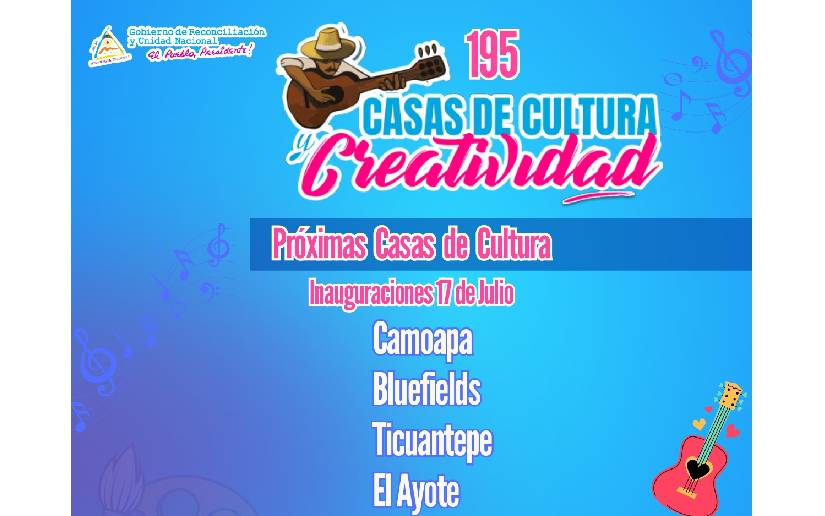 Casas de Cultura próximas a inaugurar este 17 de julio.