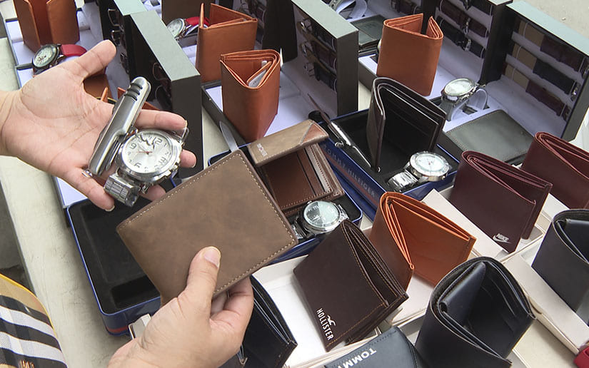"Tenemos las carteras con su reloj, antes costaban 900 córdobas, ahorita están en 700 córdobas; tenemos también navajas", describió.