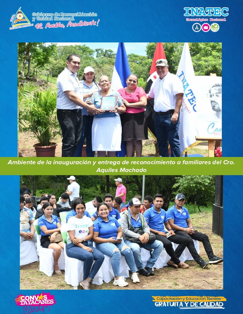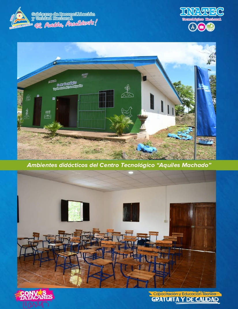 El Tecnológico Nacional (INATEC), entregó a la comunidad de San Miguelito, Río San Juan, un centro tecnológico rehabilitado y equipado donde se invirtió 6 millones de córdobas. El centro, que lleva el nombre de "Aquiles Machado", ofrecerá capacitación en el manejo de cultivos de hortalizas, frutales, musáceas, granos básicos, riego agrícola y vivero forestal a 1,200 protagonistas de Escuelas de Campo y Vocación Productiva para el trabajo y la Vida, este año.