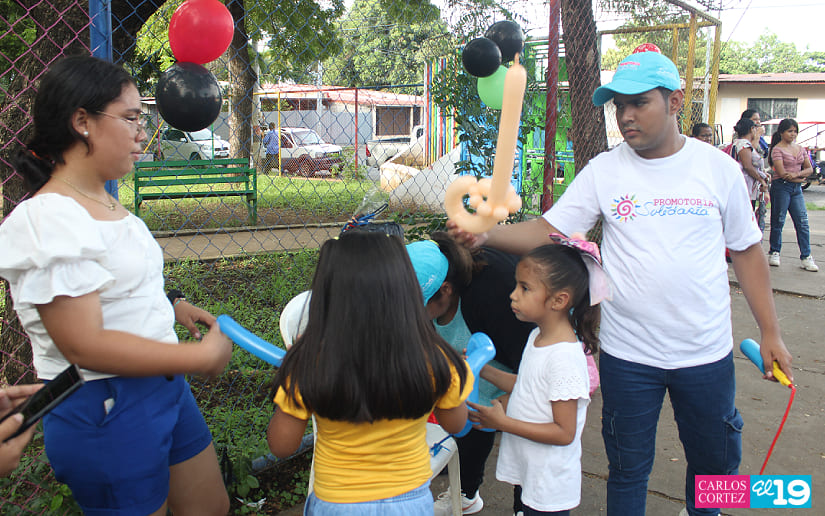 Esta actividad recreativa para niños y niñas, que incluyó juegos y dinámicas, así como una feria, se llevó a cabo en el parque del barrio San Luis, en el Distrito Cuatro de Managua.