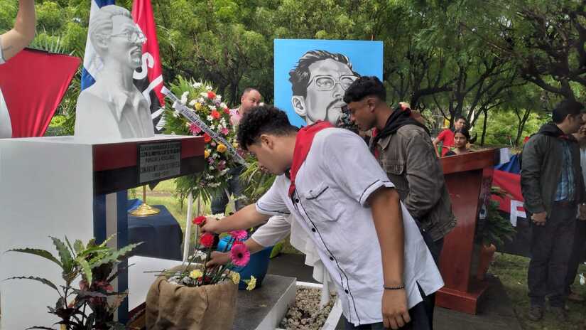 También colocaron ofrendas y flores en su monumento, en la UNAN-Managua, que fue acompañado con un acto cultural.